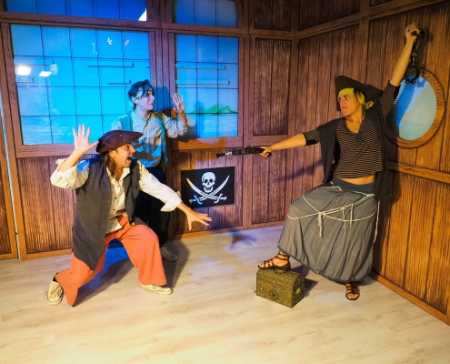 In caso di Avventura con anim-Attori, dopo il momento merenda, i bambini/ragazzi intraprenderanno un percorso immersivo per iniziare la loro esperienza fantastica. Dopo un breve video che li proietta virtualmente nello spazio, come in una vera navicella spaziale, sotto la guida degli attori entreranno nella sala scenografata dove li attendono giochi e attività a